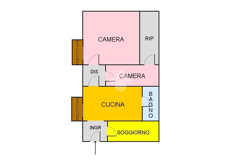 L'immobile si compone di ingresso con disimpegno, soggiorno, cucina abitabile con balcone, bagno con doccia, disimpegno zona notte che conduce ad una piccola cameretta con ripostiglio e camera letto matrimoniale con balcone.