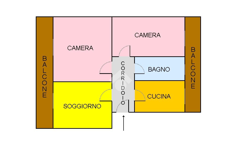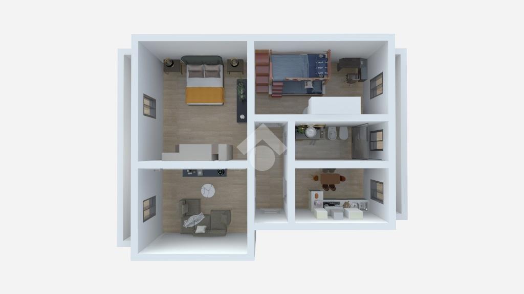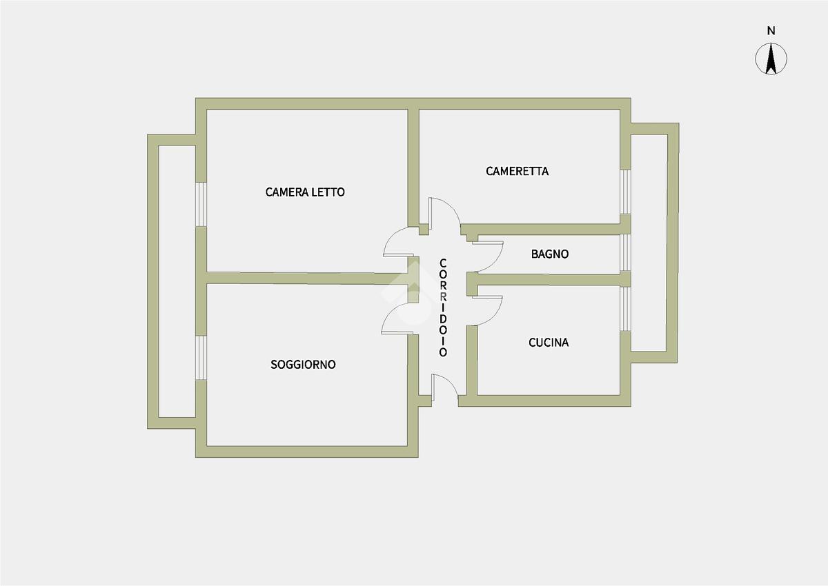 L'immobile si compone di ingresso con corridoio, cucina abitabile, soggiorno, bagno con vasca e due camere letto.